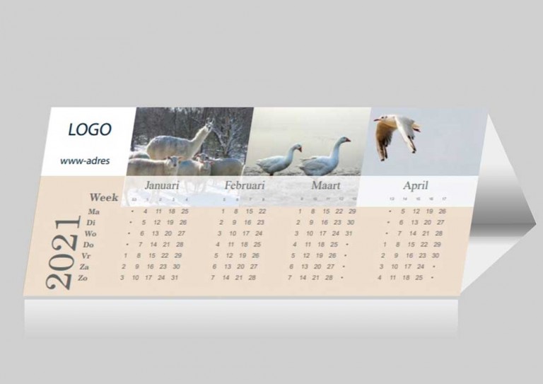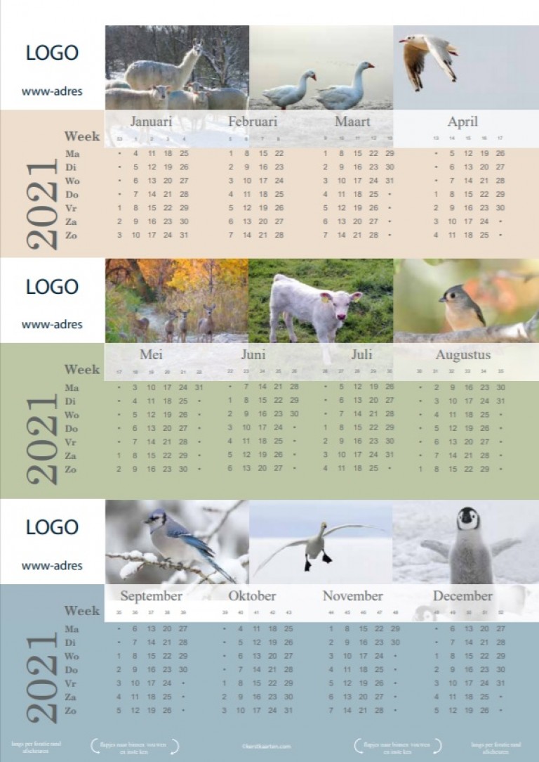 3 zijdige kalender, liggend model, dieren (8) afbeeldingen