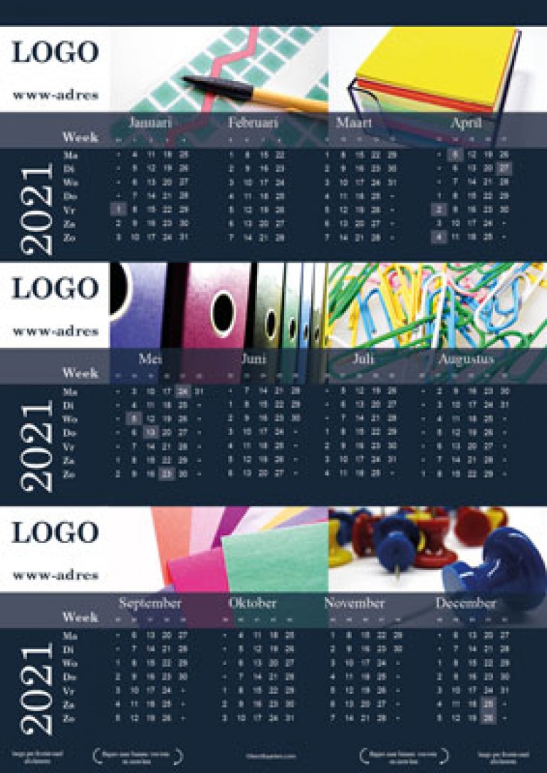 3 zijdige kalender, liggend model, kantoor afbeeldingen